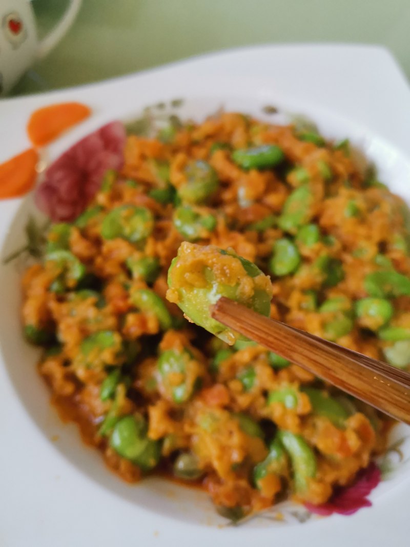 炒这个蚕豆是吃中间的软壳,做起来好吃又简单,买蚕豆要选择嫩一点的。