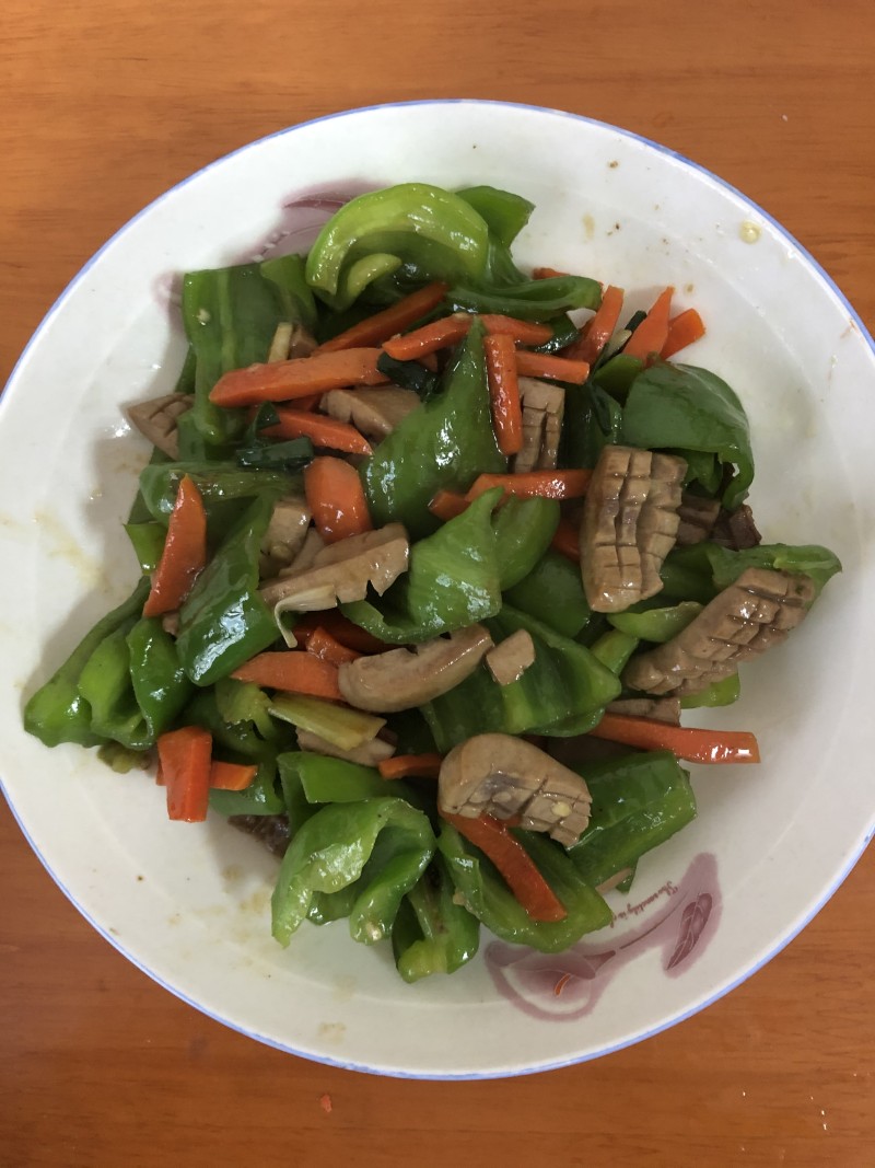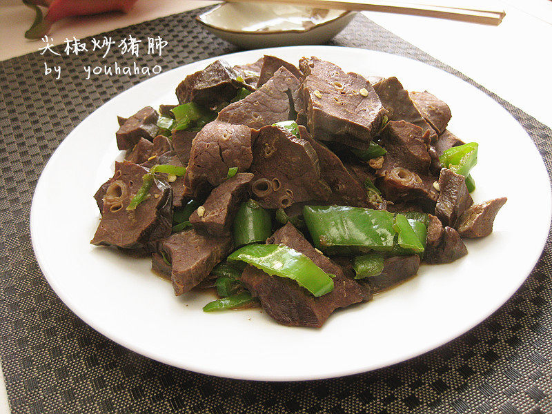 7:猪腰炒辣椒。本人不太吃辣。喜欢吃辣的选辣一点的辣椒,或在炒猪腰的时候放些小辣椒。
