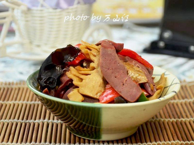羊肺1个;水发玉兰片50g;水发黑木耳50g;青红椒4个;