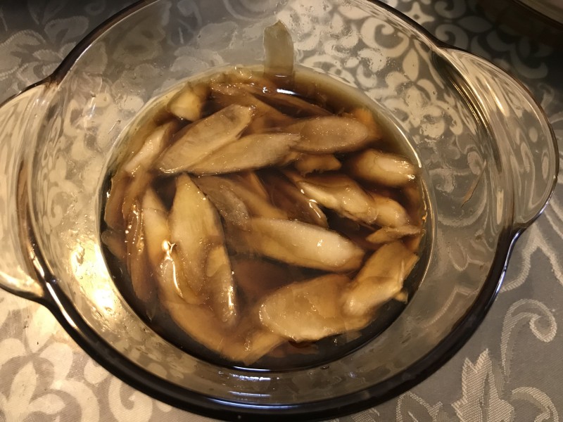 3:切好姜片备用。