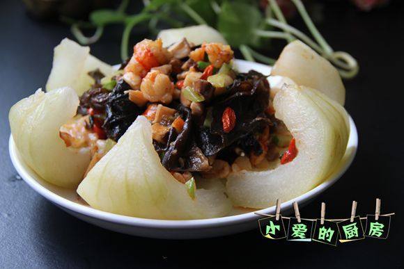 12:将炒好的各种丁盛入蒸好的冬瓜盅内。