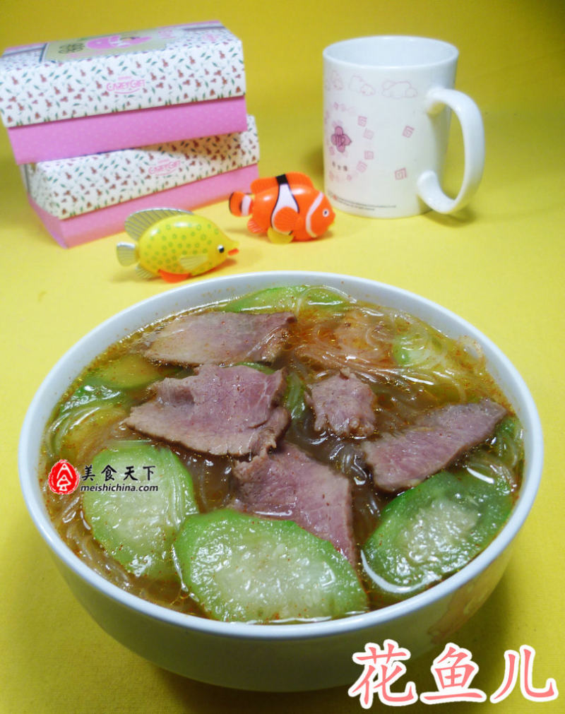 丝瓜165克;熟牛肉片90克;粉丝50克;