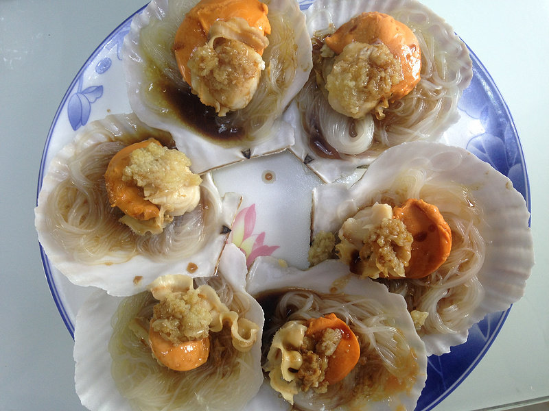 6:在蒸屉上依次放上刷洗干净的扇贝壳、泡好的粉丝
