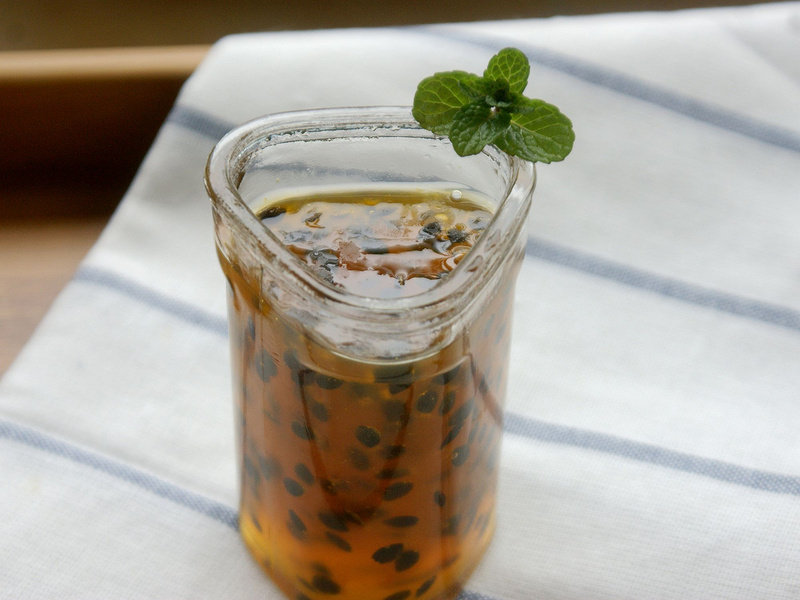 【果酱秘籍】1.百香果在切开时会流出果汁,做果酱时将砧板上的果汁也一并使用;2.百香果因为没有大块的果肉,所以在烹煮过程中时间要特别注意,避免煮过头,否则冷却之后就会变成硬如麦芽糖般的果冻;3.煮时判断是否达到果酱凝结状态很重要,很容易煮过头,使果酱变硬;4.煮好的百香果果酱,也可以和其他果酱混合,成为有百香果滋味的果酱或是双色果酱;