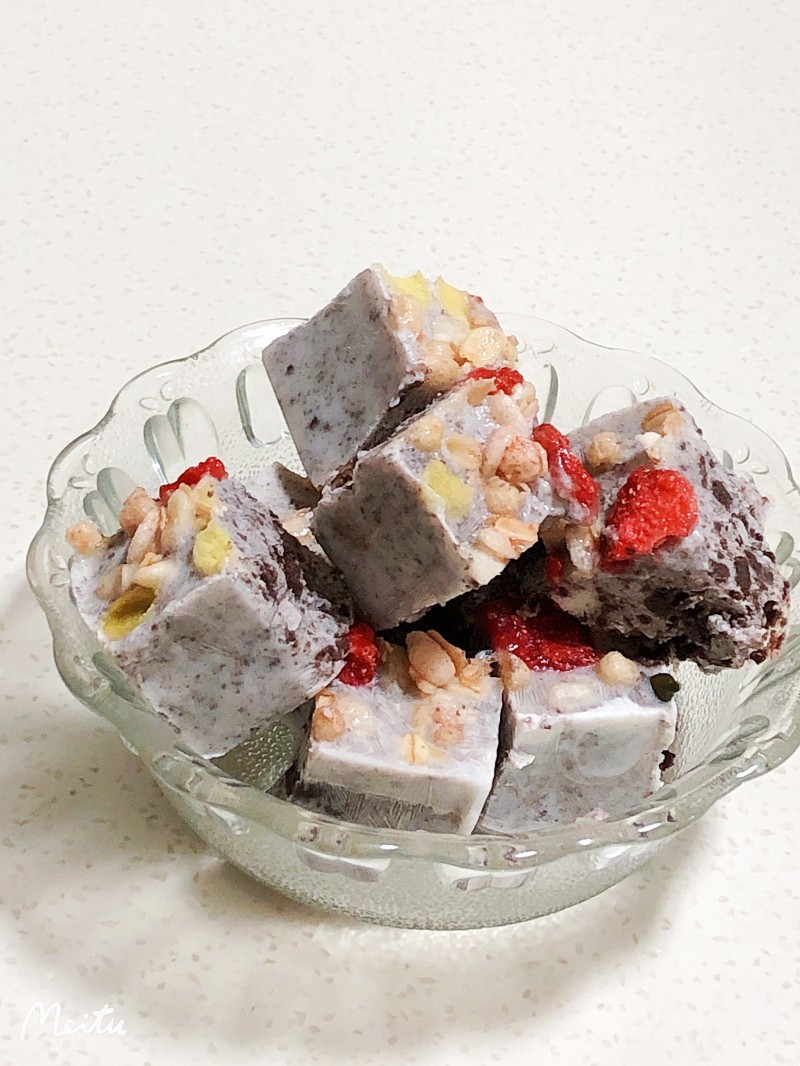 5:最后铺上酸奶,表面撒入干吃水果麦片。