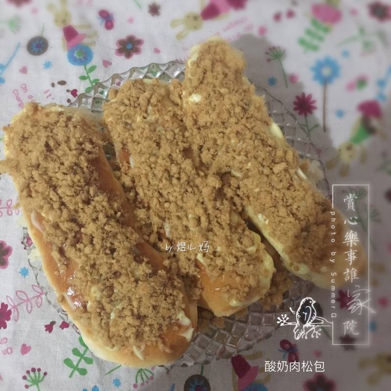 9:烤完取出,面包表面均匀的涂抹沙拉酱,最后撒上肉松(我用的儿童肉松),完成
