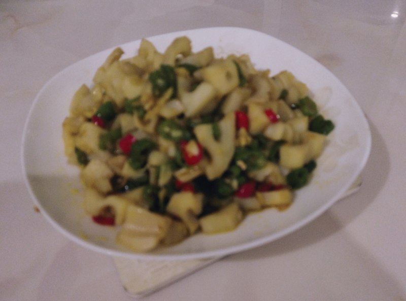 4:炒锅倒油放藕丁翻炒1分钟左右