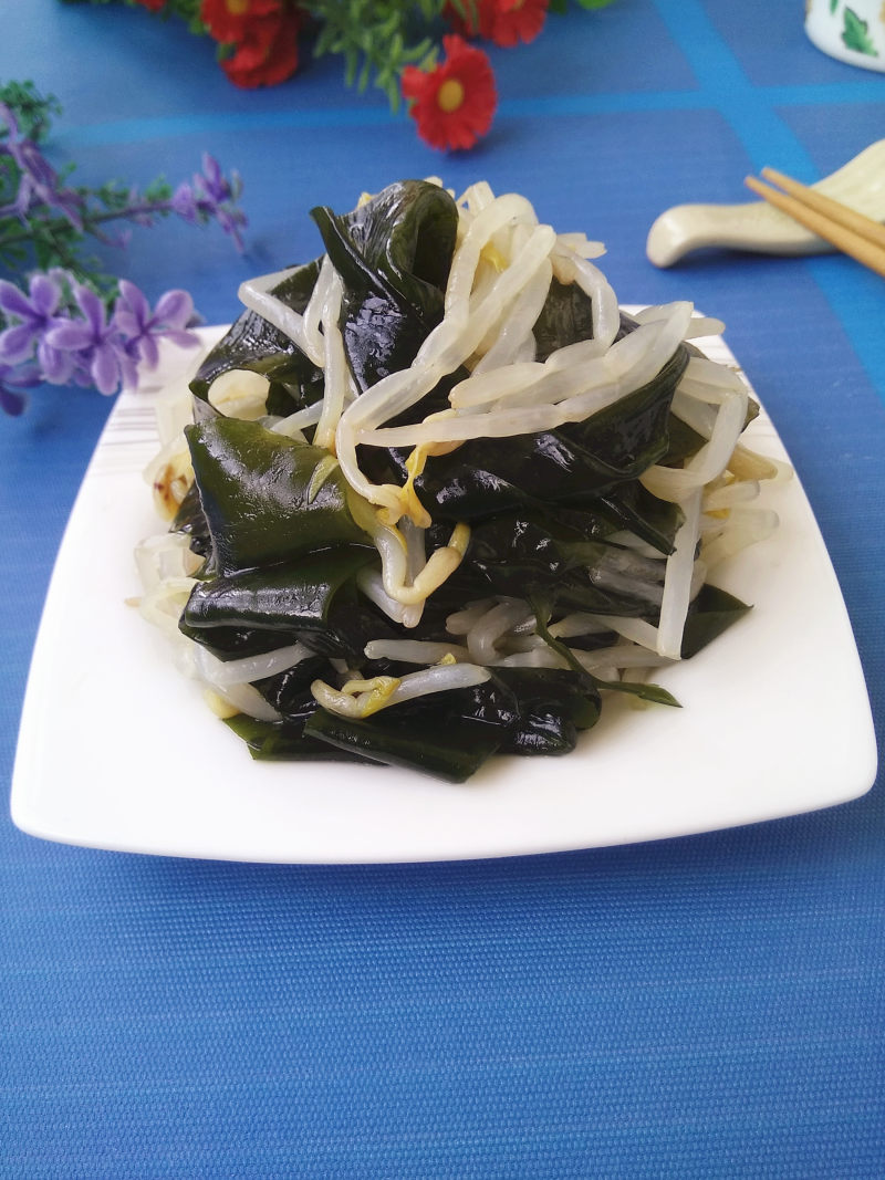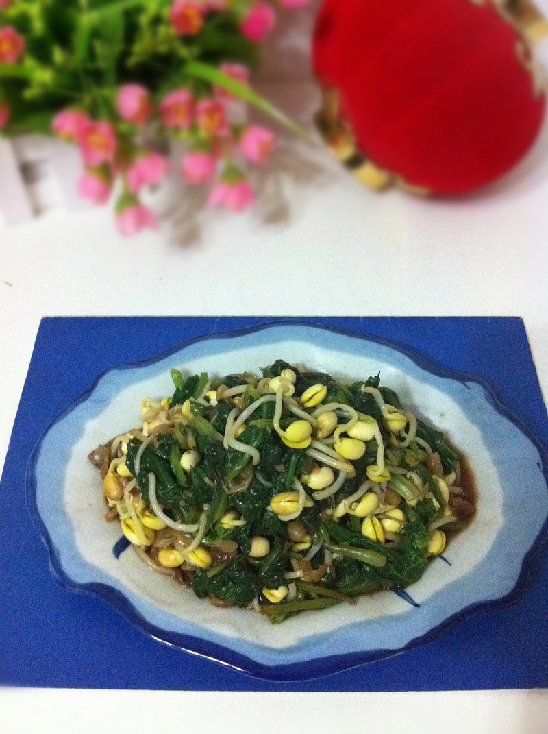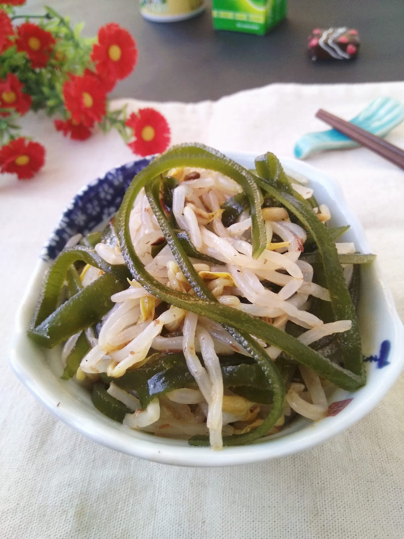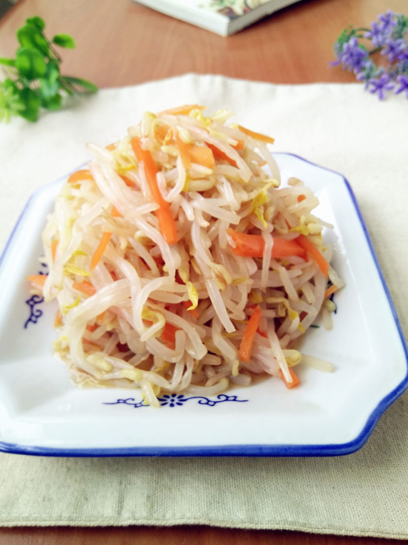 1:豆芽放热水烫一下过凉水后沥干水分装盘