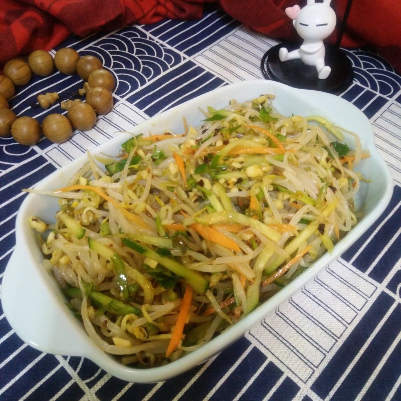 豆芽适量;胡萝卜一点;黄瓜半根;