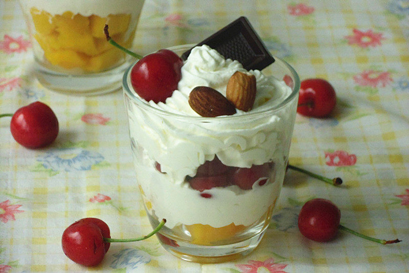 3:然后一层水果一层奶油,直到杯子装满。