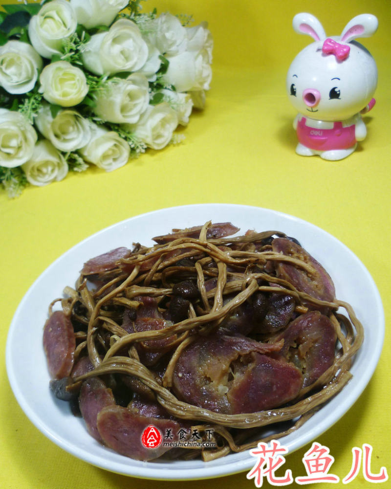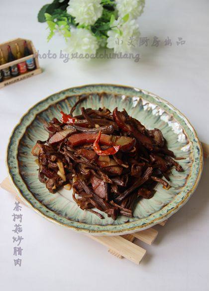腊肠炒茶树菇