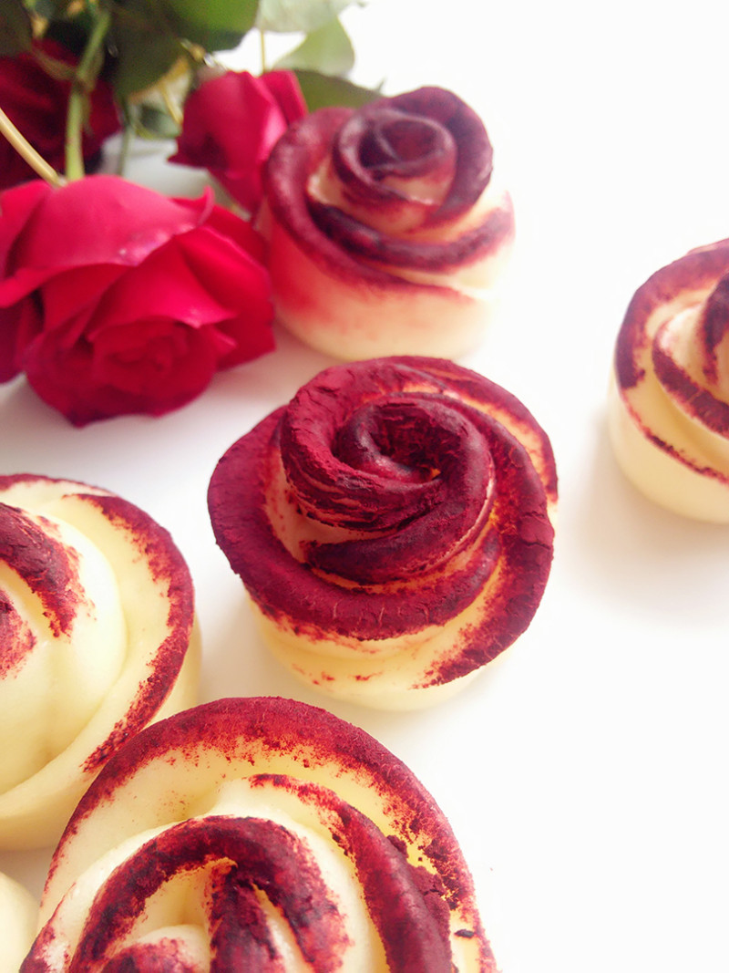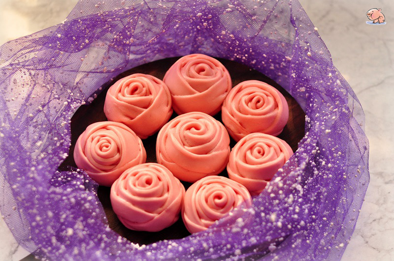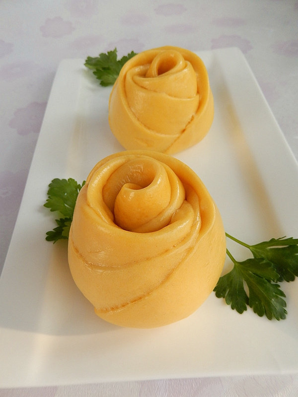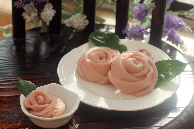5:做好的玫瑰。待玫瑰比刚做好时大开水上锅蒸15分钟就好了。