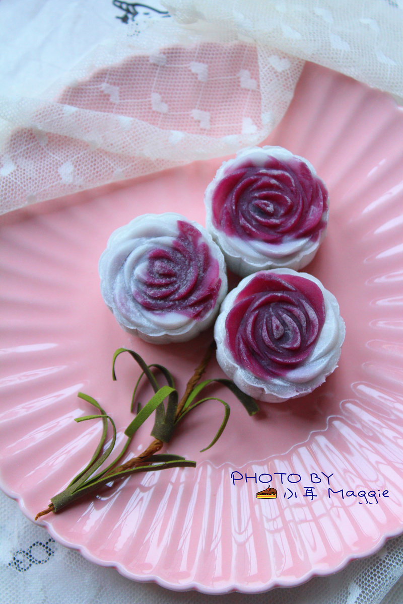 12:使用不同颜色的馅料,就可以有七彩的玫瑰花冰皮月饼了!