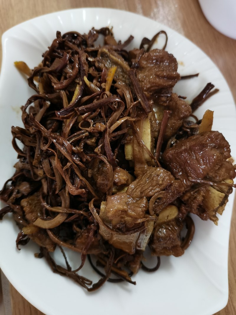 笋干提前浸泡,再煮一次水,因为晒的时候一般都是煮一次水,就切了晒的,很多笋里黄黄的水没煮出来,有的品种的笋干即使煮好几次还是黄的呢。生抽的量要保证笋干和排骨够咸,因为没有加盐了。我家一般不用老抽,也不用红烧酱油,所以成品视觉上会差点。