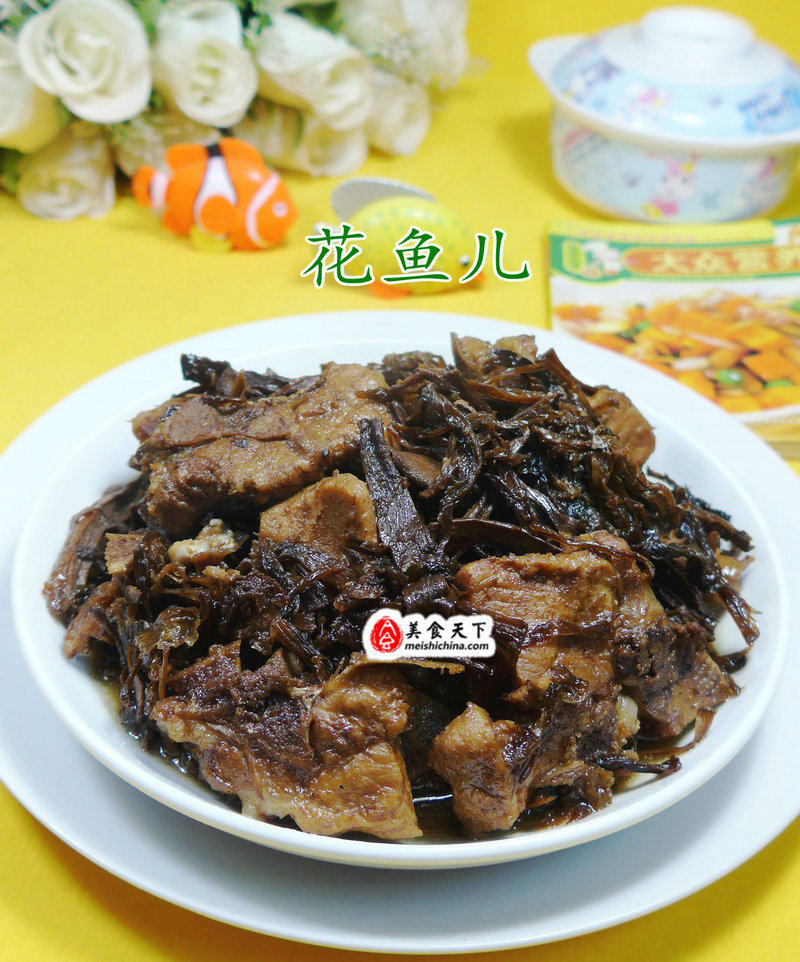 2:菜干用清水浸泡1小时,洗净沙粒,切段。