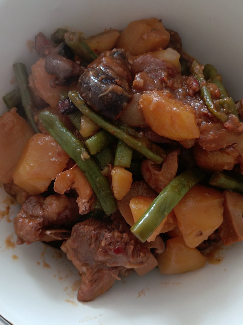 8:放酱油,胡椒粉,放点水焖在转入电压力锅煲熟即可。