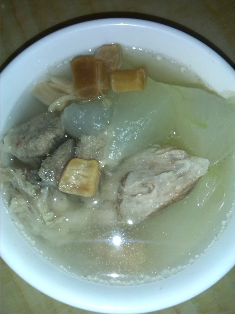 猪展肉287克;鸡爪328克(7只);节瓜1条(515克);淡菜干50克;