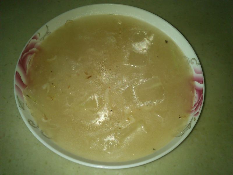 5:大火煮开,小火慢煮10分钟(煮的时间稍长一点,冬瓜会炖化,糖才好喝)加了虾皮,冬瓜汤呈现奶白汤。