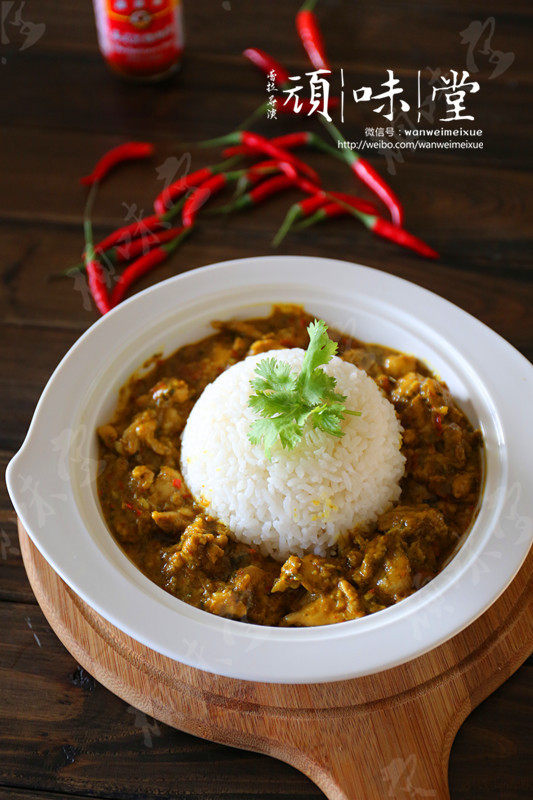 关于用咖喱粉,不太推荐新手用,在家做用量少,油温高,入油粉即开始焦化,欠火不够香,过火又发苦。很难掌握,所以不建议新手采用,如果你只有咖喱粉的话,用鲜(湿)香料做为缓冲,洋葱、姜和蒜切碎,锅内放入油,然后洋葱碎下锅,开文火炒至部分焦黄,下姜茸炒1min,下蒜茸炒至全部变黄,水分基本蒸发掉,下咖喱粉炒2、3min,就成咖喱酱了。更多趣味横生,脑洞大开营养餐,关注微信公众号:yzmmfood。