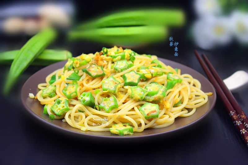 1.意面比普通面难煮熟;2.捞出的意面放一点油拌均炒出来更香;3.秋葵要切薄片,切好就放入碗中,防止粘液流失;4.煎秋葵鸡蛋时候火不宜太大。