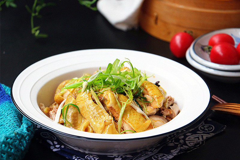 10:蒸好的鸡腿撒上新鲜的葱丝,就可上桌咯。