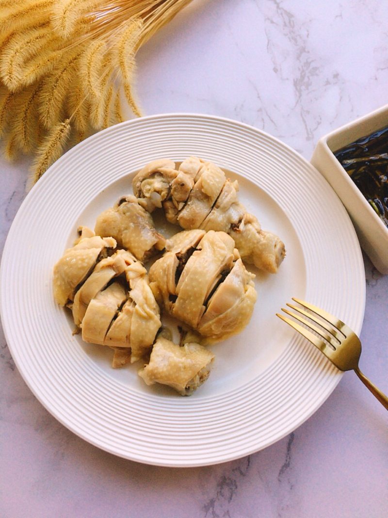 7:将鸡腿盛出放凉,斩块摆盘。