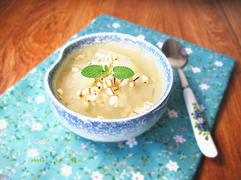 薏米适量;冬瓜皮适量;甘草3片;冰糖适量;