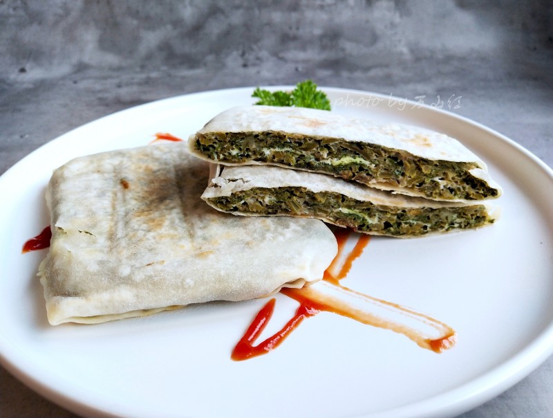 11:用薄饼包裹煎好的香椿。