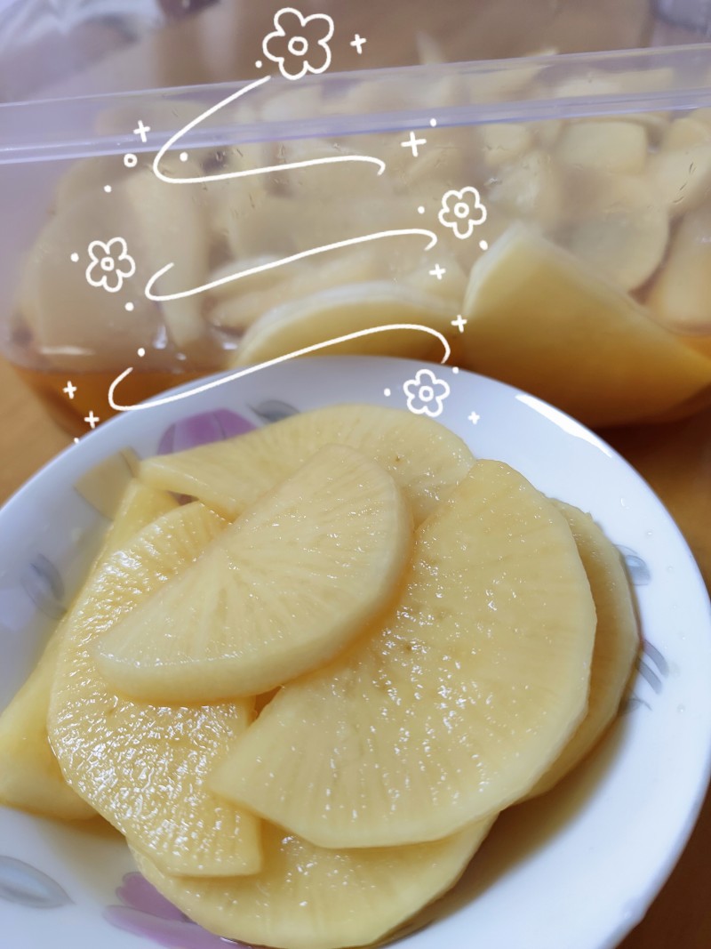 白萝卜750g;白砂糖30g;生抽1勺;米醋(陈醋)2勺;