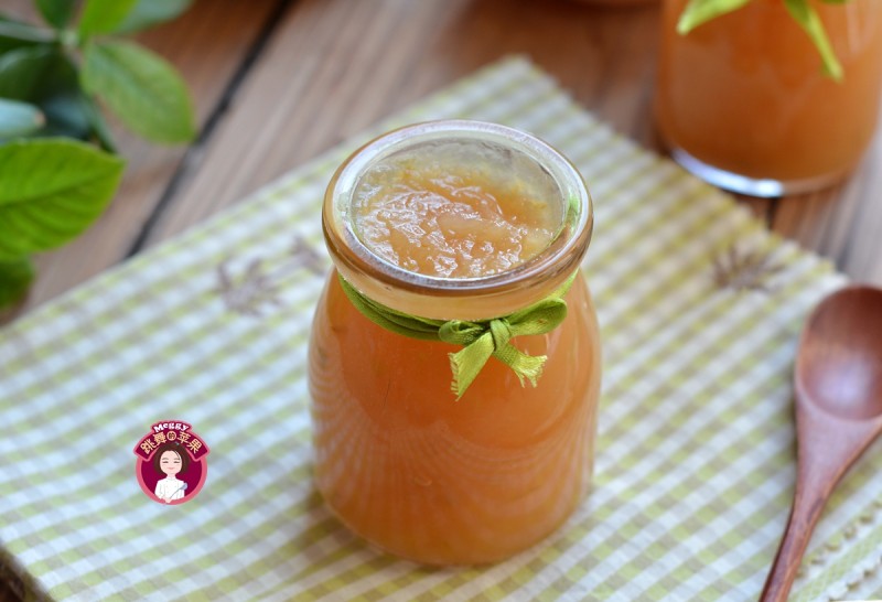 7:在熬苹果酱的时候将容器清洗干净后用沸水烫一分钟捞出,倒扣沥干,或者直接在水里煮几分钟消毒;瓶内的水珠倒扣晒干即可,不要用纸巾什么的去擦,会造成污染;果酱熬好后,趁热用烫过水的小勺舀入瓶子中,盖盖倒扣,凉后放冰箱冷藏保存,在不打开盖子的情况下,可保持数月而不坏;近期吃的可直接入净碗中,冷藏保存,3日内食用完。