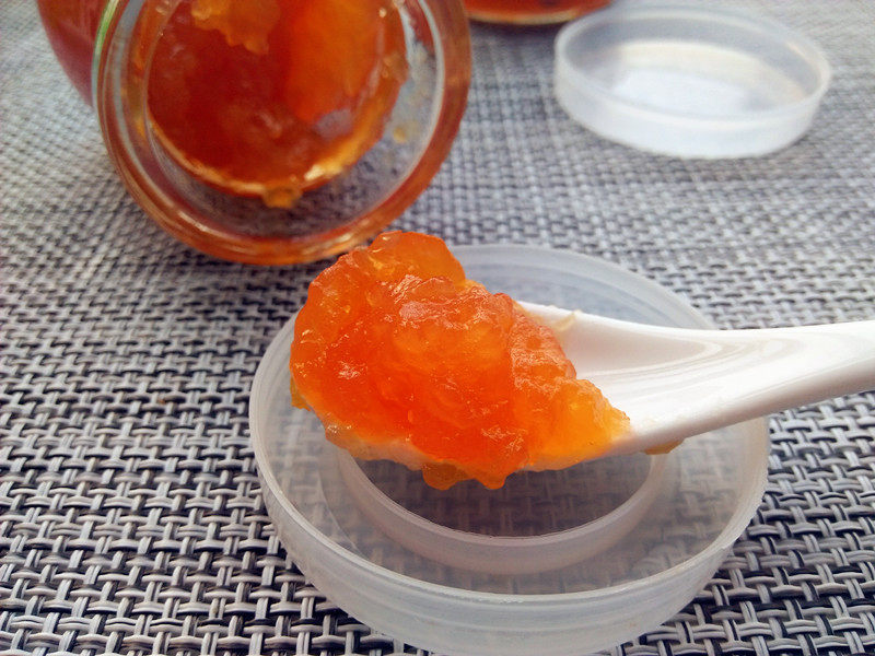5:熬煮到粘稠就可以装瓶啦,趁热把盖子盖上等凉了放进冰箱,能保存一段时间。