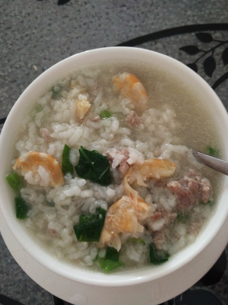 大米粥是提前熬好的,肉片切得比较薄无需煮太久,煮久会变老,不够嫩滑。菜可按自己喜欢的更换,出锅前尝尝味,如果不够咸的可以适当添加点盐,我在腌肉片时已经放足了盐的份量,所以最后无需再添加盐。