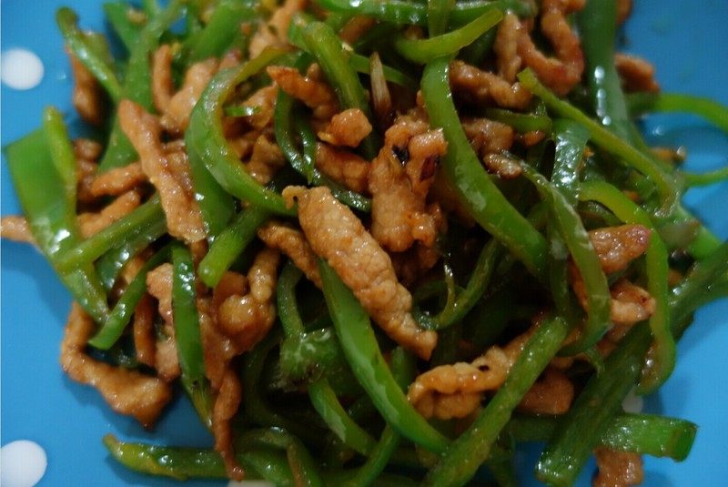 1.先用豆瓣酱、姜丝和花椒粉码味是为了去除肉的腥味儿,好让肉更容易入味儿。嫩肉粉和少许油是为了使肉很嫩,而且不易粘锅。2.青椒炒断生的时候放盐,是因为前面肉丝已经码味了,豆瓣酱里本身是有盐的,肉丝是不能炒太久的,青椒不加盐的话,吃的时候就感觉肉丝有味,青椒无味,这样会比较奇怪。3.青椒炒断生的时候放了盐,肉丝码味的时候也有盐,后面是不用再放盐的,味道刚刚好。4.油七八成热到肉丝入锅中后,马上把锅端离火源,是为不不让油温太高,免得肉会粘锅,而且会很老。5.端离锅后,油开始冷却,锅内的油没有向外跳得很厉害的时候,将锅端到火源上用大火翻炒。6.炒肉不需要时间太久,肉开大火,放入青椒,再放鸡精,这个时间不要超过1分半钟~