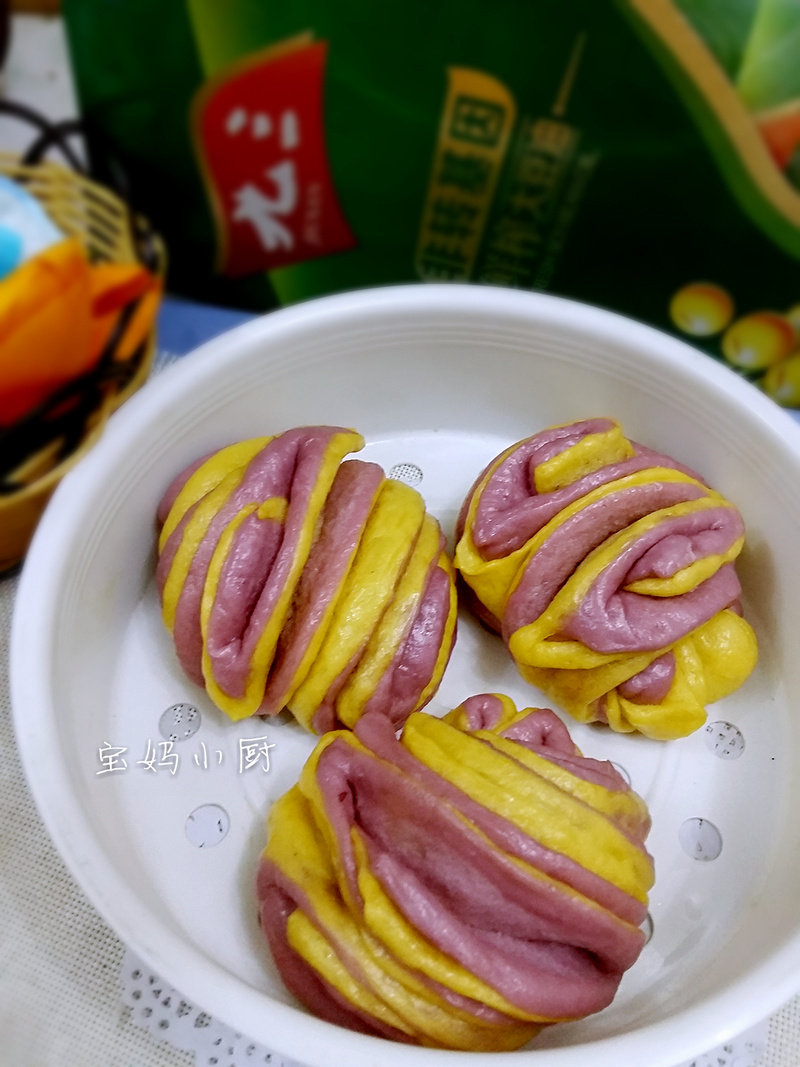 面粉适量;南瓜两小块;紫薯2个(小的);