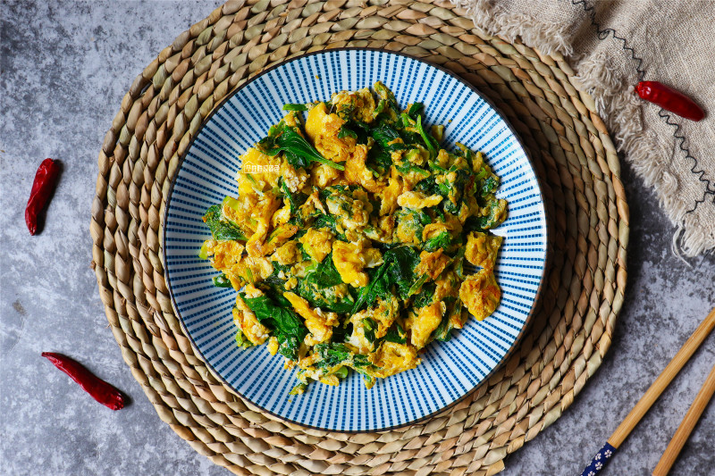 1.芹菜叶要选择新鲜的,如果买回来的芹菜叶子已经干燥变软就不要炒了。2.炒鸡蛋时,蛋液凝固了大半就可以关火了,锅里剩余的热量完全足够把鸡蛋完全烘熟的,这样炒出来的鸡蛋会比较鲜嫩些。3.芹菜叶中含丰富的钾元素,可以促进新陈代谢,还能降血压。