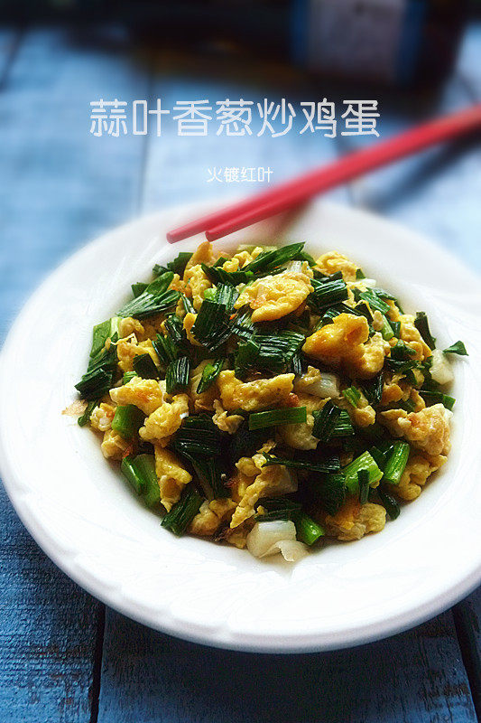 1:蒜叶与葱切小段,鸡蛋打散拌小许的盐