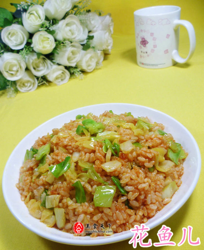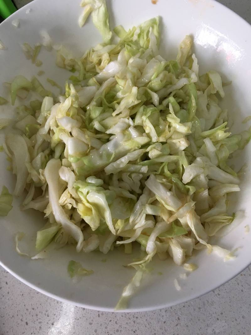 4:少许油,中火,把洋白菜炒至8成熟,盛出控水。备用