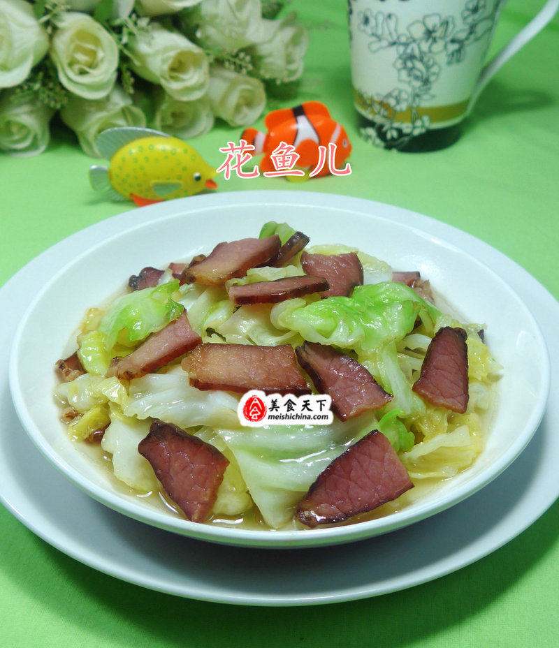 1:食材:圆白菜(已清洗切开)、酱肉(已切片)