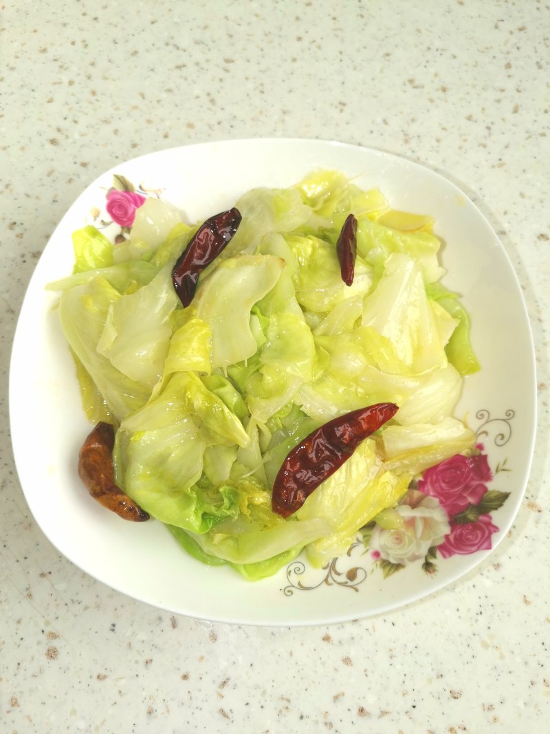 圆白菜1个;干辣椒3个;蒜6g;盐2g;