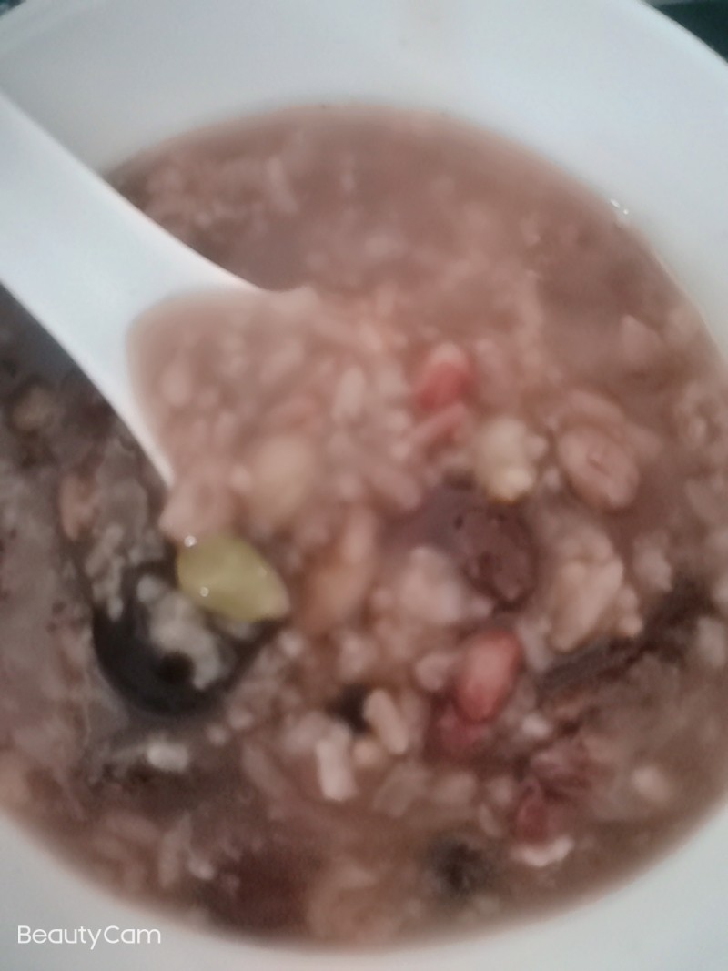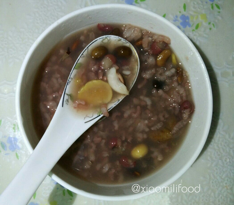 莲子适量;桂圆适量;百合适量;燕麦适量;薏仁适量;花芸豆适量;黑米适量;红豆适量;玉米渣适量;红枣适量;麦仁适量;糯米适量;