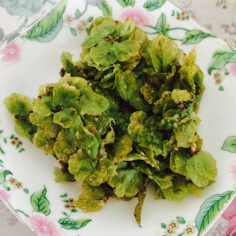 2:把榆钱挑选干净,用盐水浸泡10分钟,再多清洗几遍