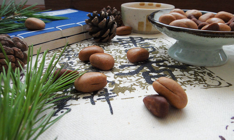 9:得,成了,给松籽儿又穿上壳啦~~~假日的下午,来杯清茶,吃几颗“松子”。穿上马甲我也认识你呀,这个皮儿配松籽的香味儿,很好吃。男人开始说不吃,然后尝了一个,然后……就预约下次了。话说好松籽不便宜呀,钱包要遭殃……