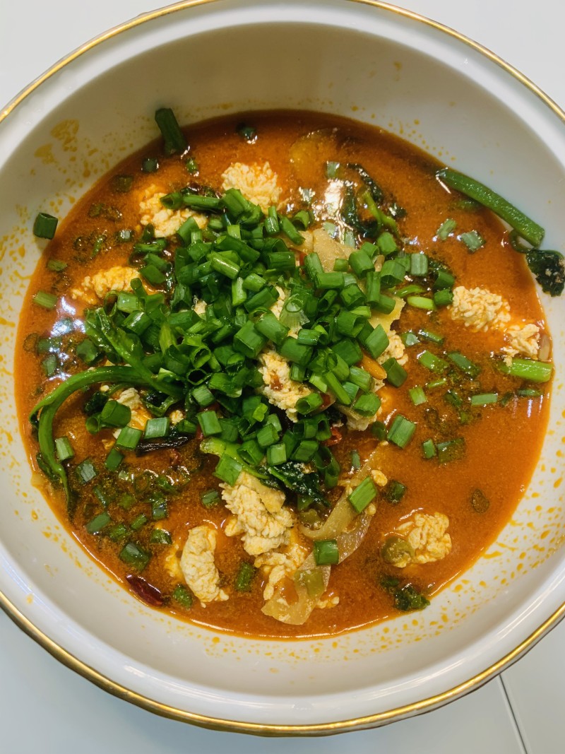 9:捞出放碗中,撒上葱花,我没有放盐和味精,泡椒有味道。