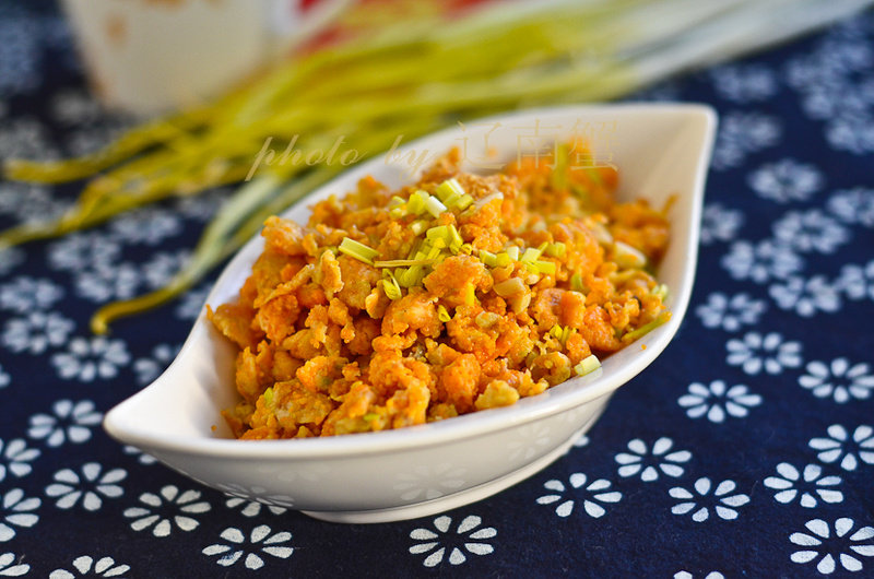 4:鸡蛋打散,和鱼籽充分混合,加盐适量。