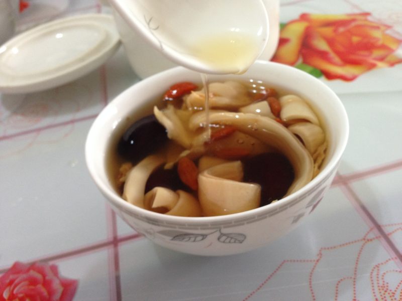 4:大火烧开,中火隔水炖45分钟(这次泡发的有点多,炖了两盅)