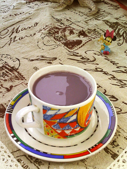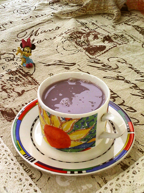 如果家里用的水呈碱性的话,紫薯豆浆颜色会变蓝,只需在制作的时候加入一小勺白醋即可。