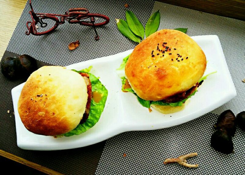14:盖上顶盖的汉堡胚,好吃的猪排堡就做好了,超级小资!猪排香嫩酥脆,汉堡胚柔软好吃,小朋友说太好吃了!