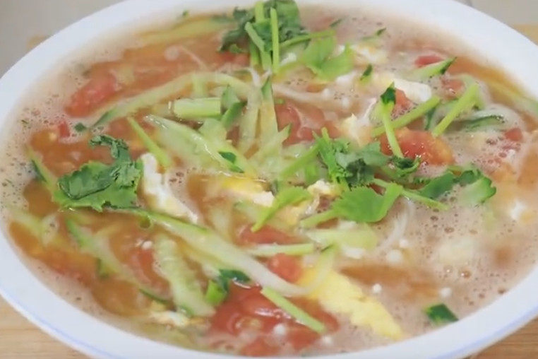3:锅里放油,油热放入番茄翻炒,放入盐翻炒出汤汁,加入开水放丝瓜和耗油,水开下入面条,煮熟后放入炒好的鸡蛋。鸡精可以不放。可以放点小葱花或者香菜。我没放,因为闺女不要放。
