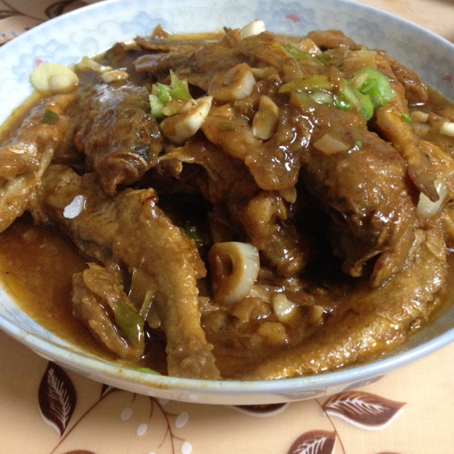 10:撒点葱花,装盘开吃吧,呵呵,香浓的酱汁,鲜嫩的鱼肉,让你胃口大开哦
