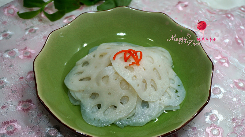 藕片切得薄就少焯一会儿,切得厚就多焯一会儿,过凉水可保持清脆的口感及洁白的外表;醋和糖的比例可以随自己的口味来调整,依个人的口味也可以放其它的调料。